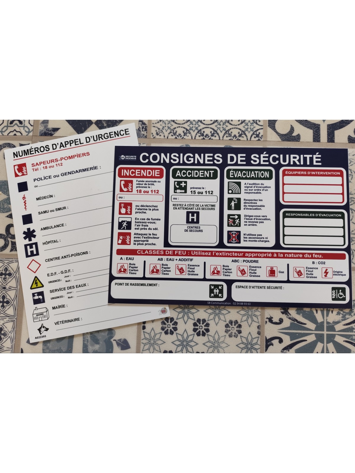 lot de 2 panneaux règlementaire pour mise en conformité , Consignes de sécurité + numéros appel d'urgence